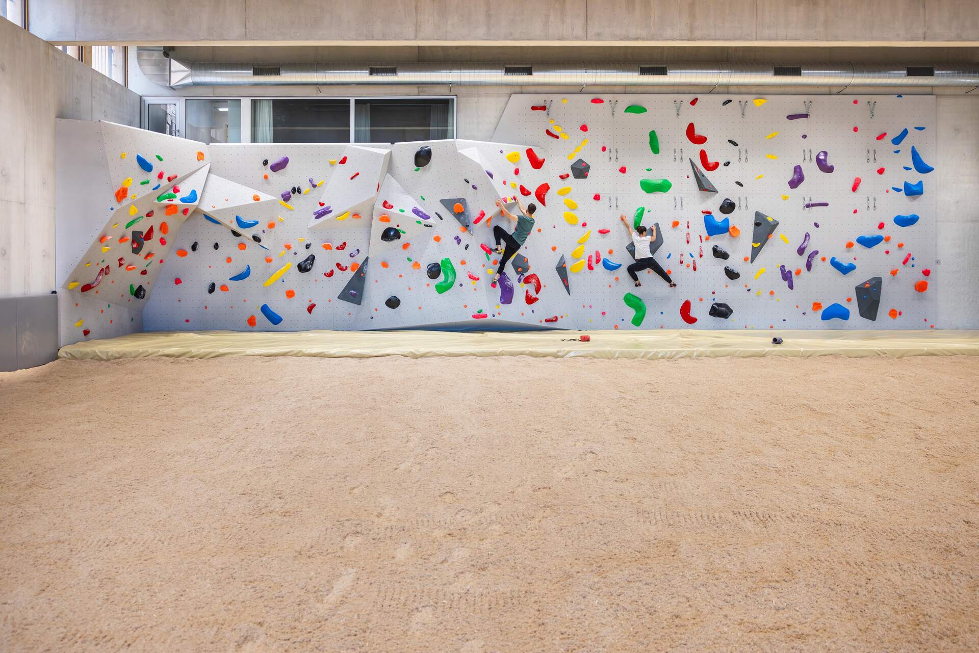 Boulderwand in der Ausbildungshalle mit Tobias Baumberger und Manuela Catillaz. Klettern. Boulder. Foto: BASPO / Charlène Mamie