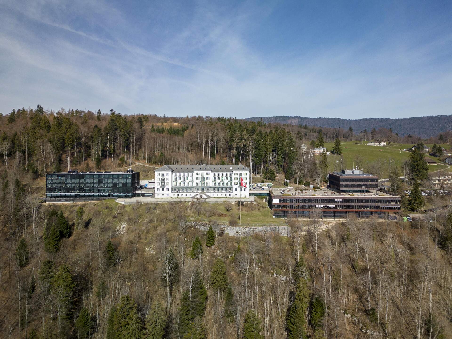 Flugaufnahme BASPO Grand Hotel Hochschule Hauptgebäude Foto: BASPO / Daniel Käsermann